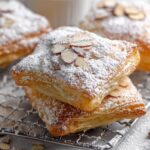 This Almond Puff Pastry Recipe features flaky, golden puff pastry squares filled with a rich almond mixture, topped with sliced almonds and powdered sugar. Perfect as a delightful breakfast treat, snack, or dessert, these pastries are crisp and buttery with a sweet almond flavor.