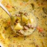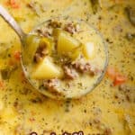 A creamy and comforting Cheeseburger Soup loaded with ground beef, vegetables, potatoes, and melted cheese, perfect for a hearty meal.
