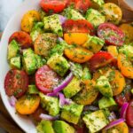 A fresh and vibrant Avocado Salad combining crisp cucumbers, juicy grape tomatoes, and creamy avocados, tossed in a zesty lemon and herb dressing. Perfect as a light side or a healthy snack, this salad is easy to prepare and bursting with flavor.