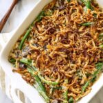 I’ve frozen this Healthy Green Bean Casserole with Crispy Onions Recipe a few times by assembling it but skipping the final bake. Make sure to cool the assembled casserole completely, cover tightly with foil, and freeze for up to 2 months. When ready to eat, bake straight from frozen with a little extra cooking time.