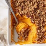 - Assemble Casserole: Spoon the sweet potato mixture evenly into the prepared casserole dish. Evenly sprinkle the pecan and oat topping over the sweet potato layer.