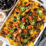 Nachos are best enjoyed fresh, but if you have leftovers, I recommend removing fresh toppings like tomatoes and cilantro first. Store the beef and bean mixture separately in an airtight container in the fridge and chips in a sealed bag to keep them crisp. When ready to eat, reheat just the beef and beans and layer them over fresh chips.