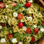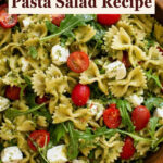 A vibrant and refreshing Pesto Pasta Salad featuring al dente mini farfalle pasta, fresh arugula, juicy grape tomatoes, creamy mozzarella pearls, and a homemade basil pesto with a zesty lemon touch. Perfect as a light lunch or side dish, this salad combines classic Italian flavors with fresh ingredients for a crowd-pleasing dish.