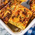 Yes! You can fully assemble the casserole the night before, cover it, and keep it in the fridge. Bake it fresh the next morning—just add a few extra minutes of cooking time if it’s cold straight out of the fridge.