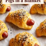 A classic and easy appetizer featuring smoked cocktail sausages wrapped in flaky crescent dough, baked to golden perfection and optionally topped with everything bagel seasoning for extra flavor.